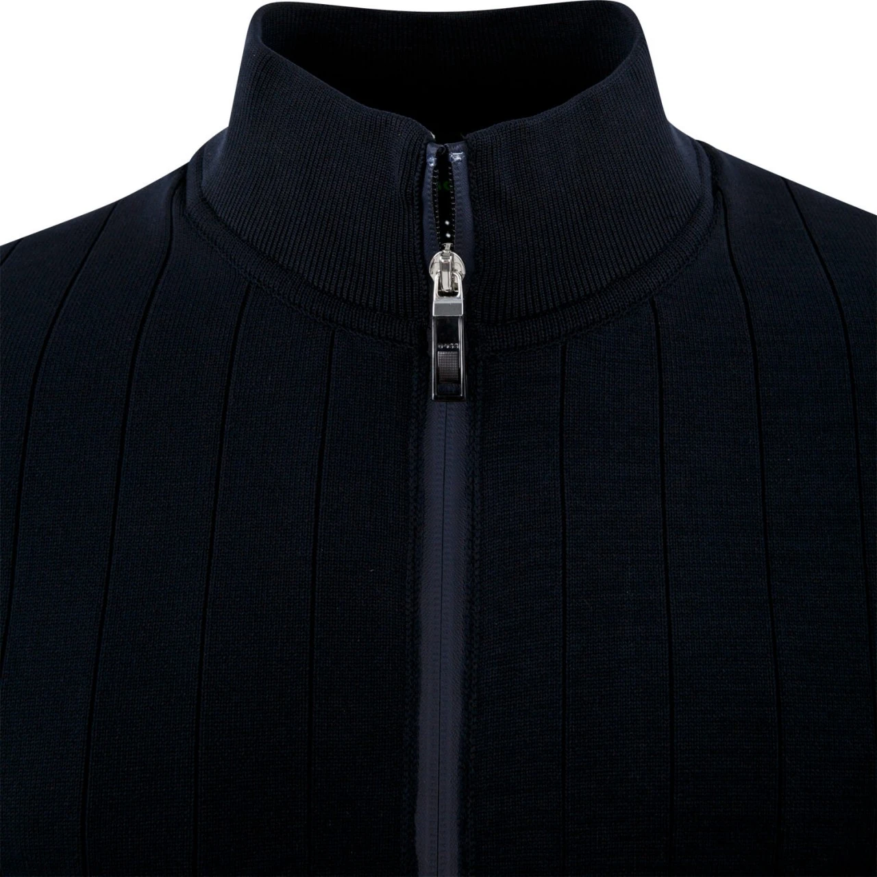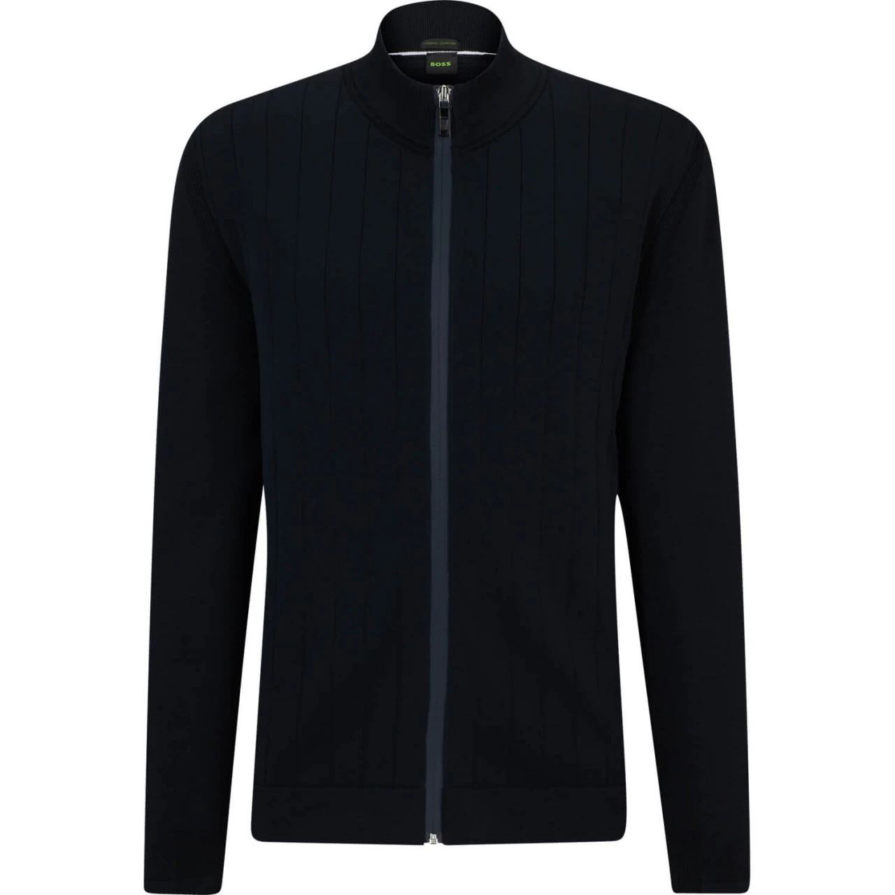 Gerade geschnittene BOSS Strickjacke mit Reißverschluss, temperaturregulierenden Eigenschaften und gestrickten Mesh-Details für optimale Atmungsaktivität und Bewegungsfreiheit.